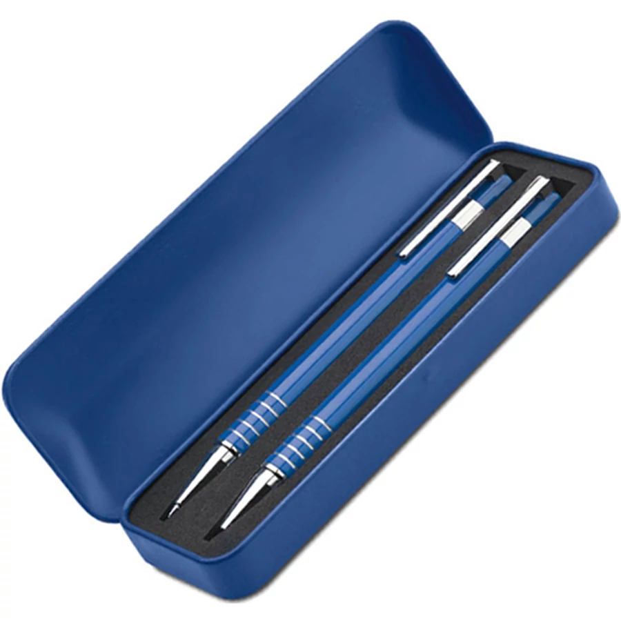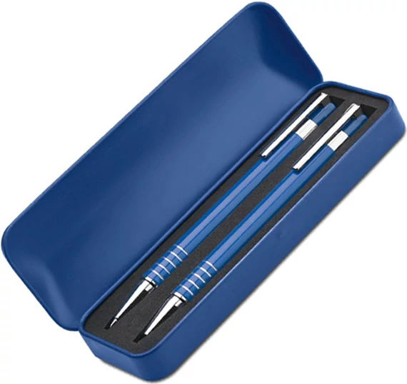 Alumínium golyóstoll és töltőceruza (0,7 mm betétekkel) színben hozzá illő fém dobozban.