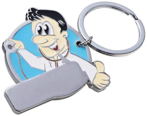 Fém kulcstartó, színes lakkozott felülettel és sima gravírozható felülettel.