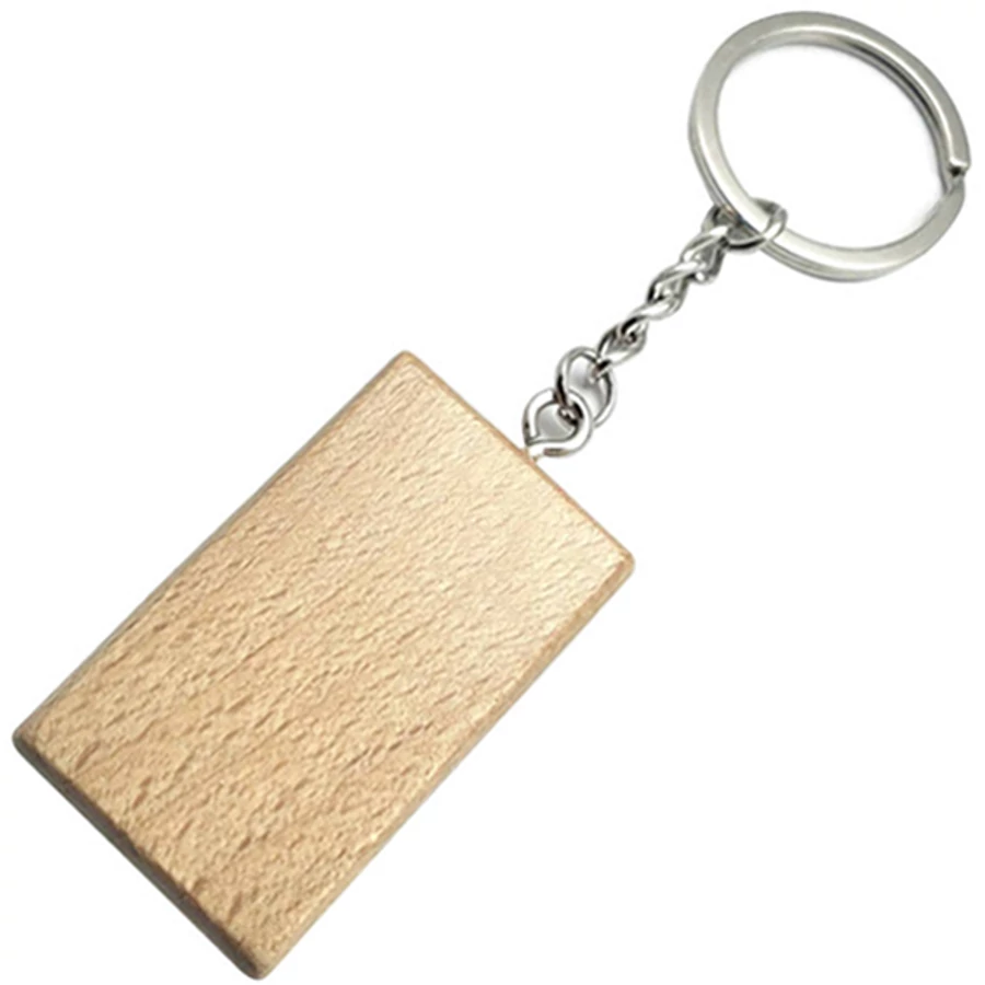 Téglalap alakú fa kulcstartó , fém kulcskarikával.