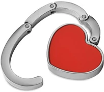 Szív alakú fém táskafogas, melynek vége mágnessel záródik.