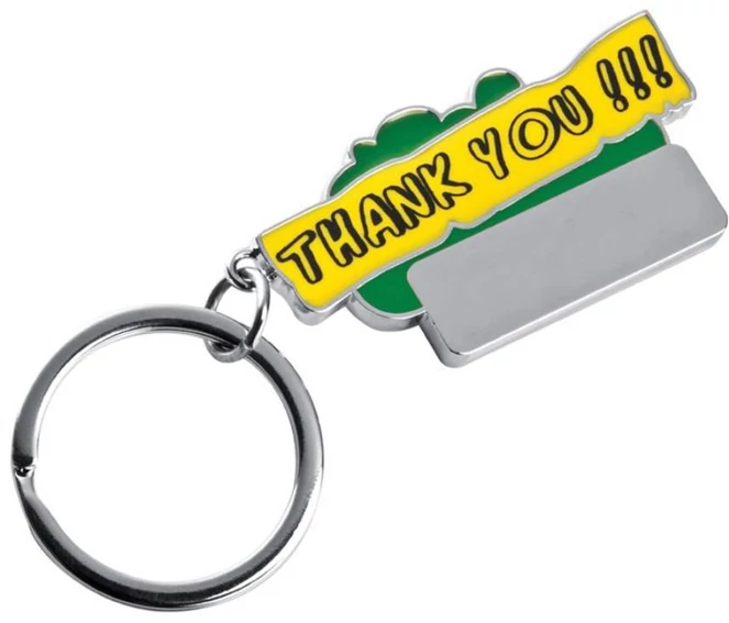 "Thank You" feliratos fém kulcstartó, színes festett és sima gravírozható felülettel.