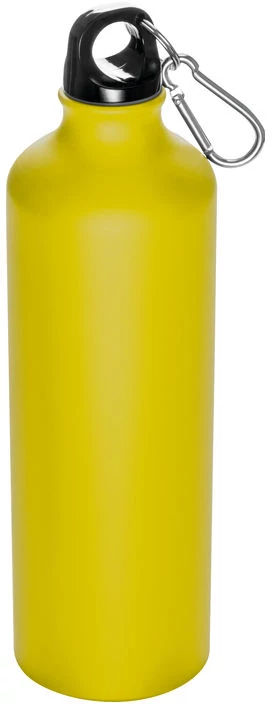 Alumíniumból készült BPA mentes nagy ivópalack karabinerrel, sárga színben.