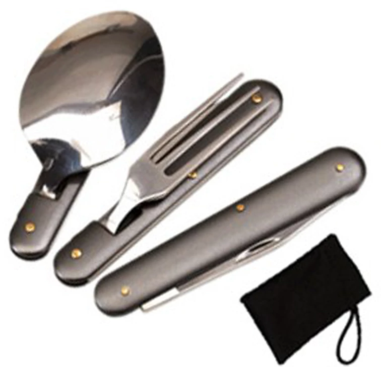 Tartalma: kés, villa, kanál sörnyitóval/konzervnyitóval a végén.