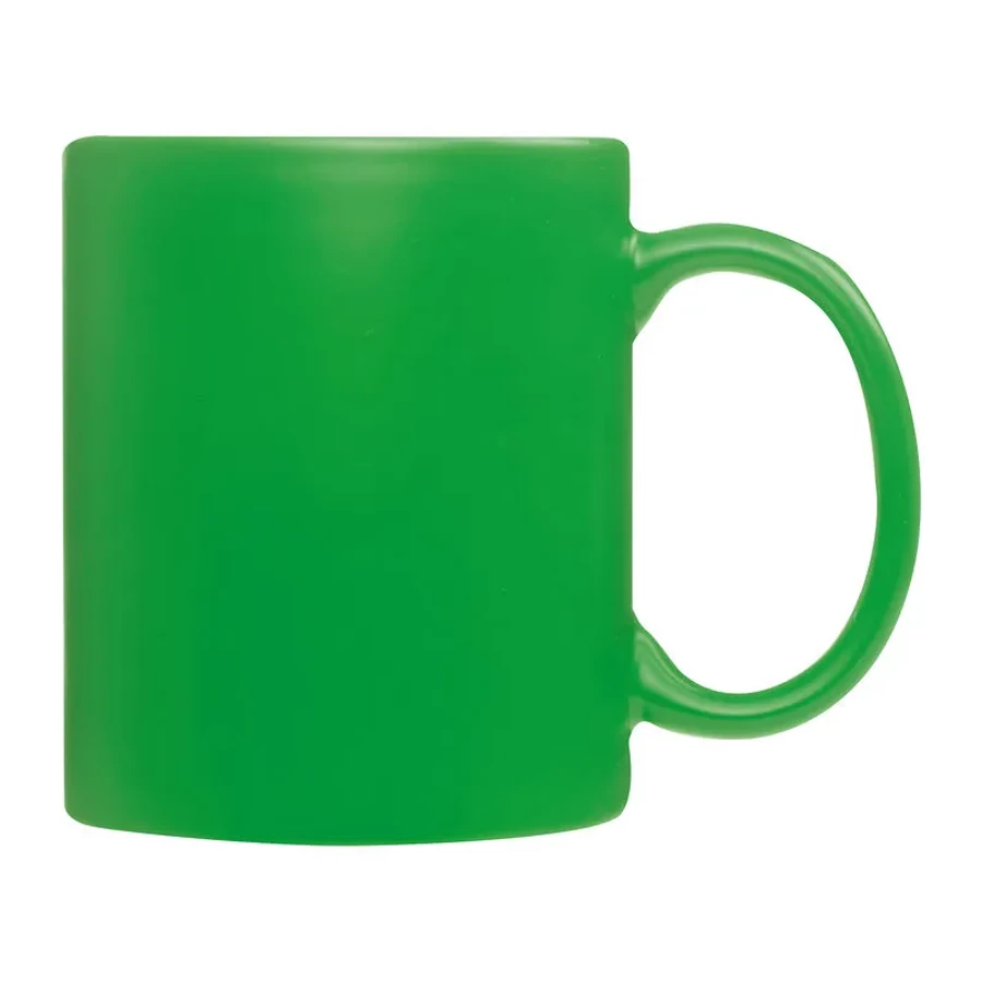 Zöld színben elérhető gumírozott, klasszikus kerámia bögre, színezett külső és fehér belső résszel.