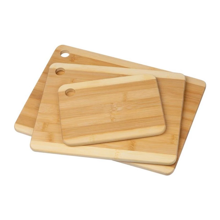 Bambusz vágódeszka szett, lekerekített sarkokkal, három különböző méretben.