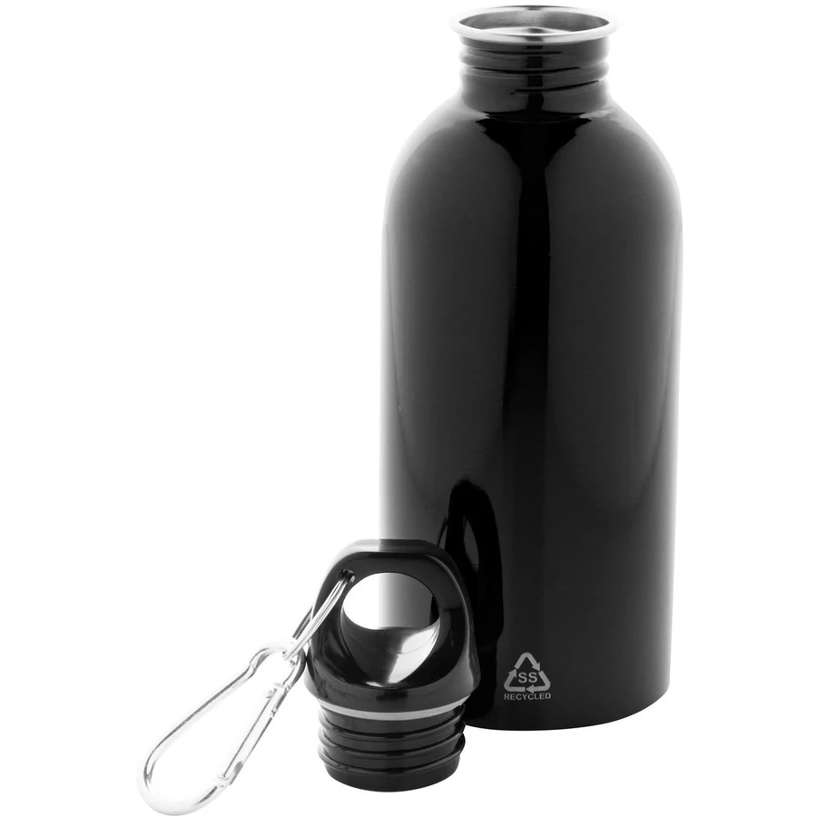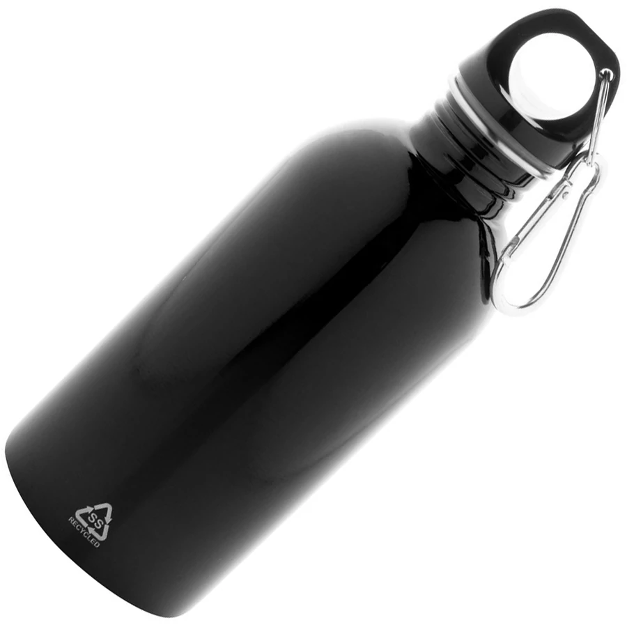 Újrahasznosított rozsdamentes acél kulacs alumínium karabinerrel, 400 ml.