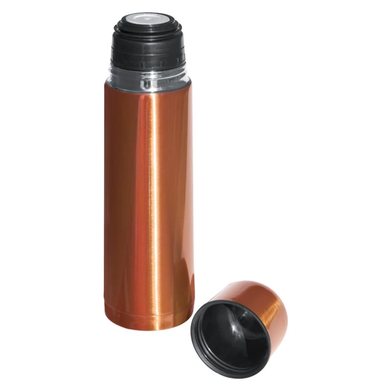 Rozsdamentes acél termosz, gyors zárral és bögrével.