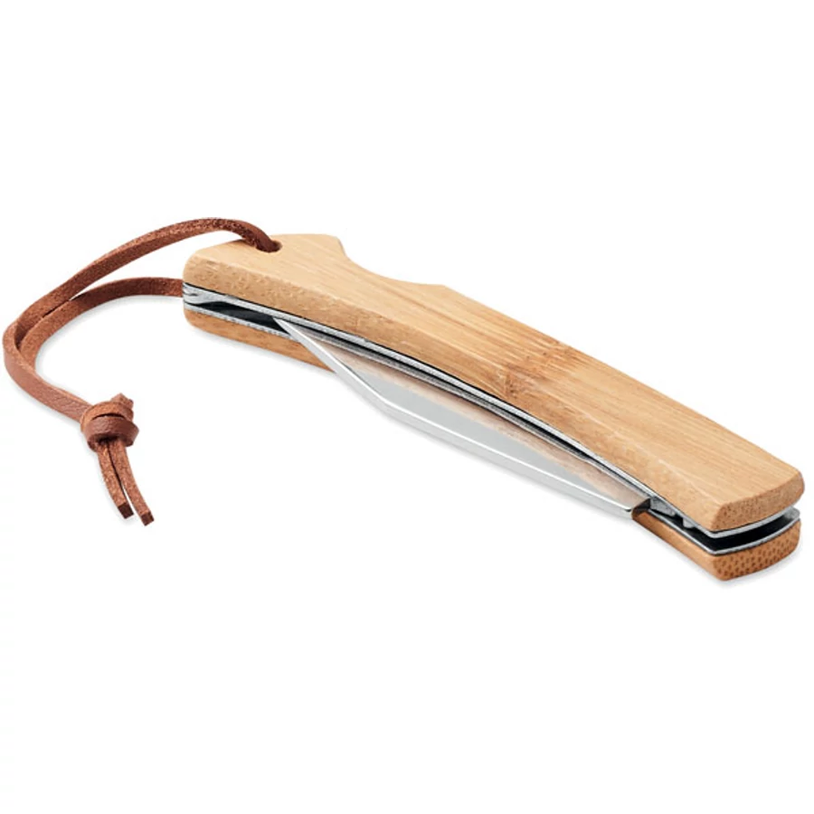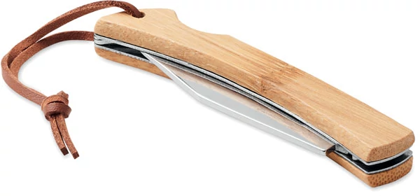 Összecsukható bicska rozsdamentes acélból és bambusz nyélből PU nyélzsinórral