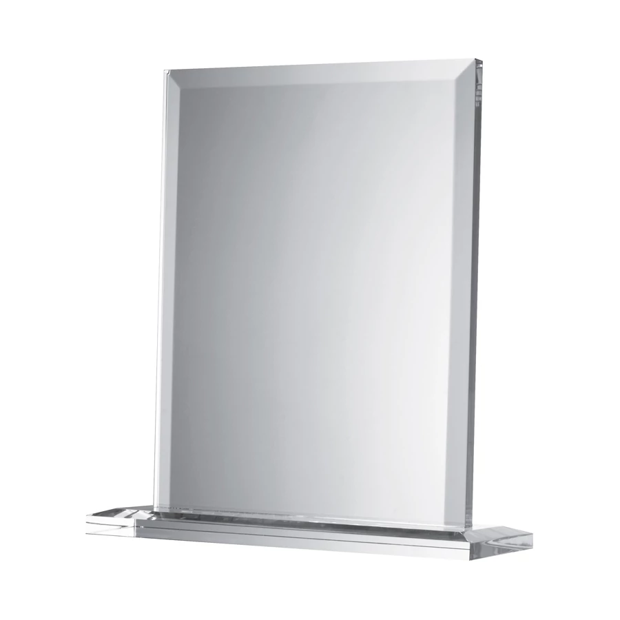 Átlátszó üveg plakett, nagy gravírozható felülettel.