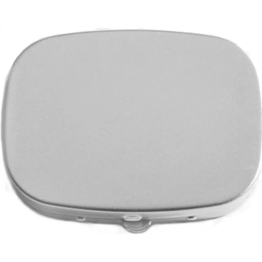 Matt ezüst színű fémdobozos kivitel, a tető belső felén tükörrel.