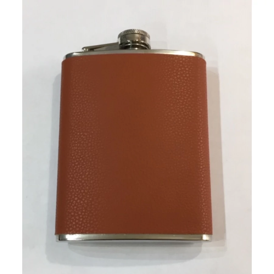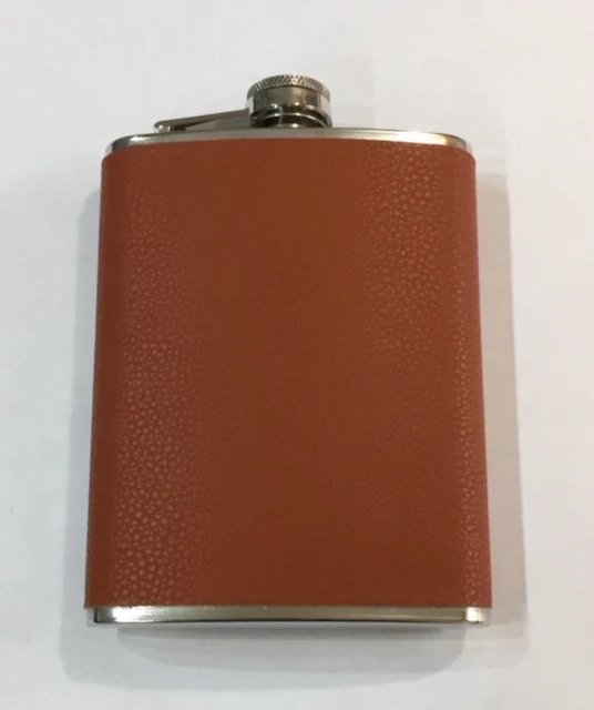 Műbőr borítású rozsdamentes acélból készült flaska.